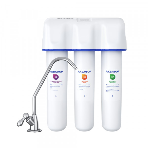 Обратноосмотические фильтры используются для абсолютной защиты от накипи, т.к. полностью устраняют соли жесткости из воды.нетЧисло ступеней очисткиКартриджи последовательно очищают воду и от видимых примесей, и от растворенных. Первый картридж задерживает более крупные частицы, а каждый последующий - более мелкие. Чем больше ступеней - тем лучше фильтр очистит воду: поймает более мелкие видимые частицы ржавчины, песка и ила, успеет захватить из воды максимум растворенных примесей - хлора, нитратов, тяжелых металлов и других.3МинерализацияПроисходит после финишной очистки воды. Необходима прежде всего в фильтре обратного осмоса, поскольку такой фильтр полностью устраняет из воды все примеси, в том числе минералы. Минералы добавляются в оптимальной концентрации - для пользы и привычного вкуса воды.нетПостфильтрацияФинальный этап очистки воды: картриджи постфильтрации удаляют самые мелкие механические частицы и кондиционируют воду, придавая ей более приятный вкус.нетНакопительная емкостьОбычно нужна в фильтрах обратного осмоса. Глубокая фильтрация требует времени. Чтобы Вам не приходилось ждать, пока вода наберется в чайник или кастрюлю, почти во всех моделях используется накопительный бак для чистой воды или другая емкость. В стандартном фильтре обратного осмоса под мойку воды в баке достаточно для семьи из 5-6 человек.нетФильтрующий модуль в комплектедаОтдельный крандаДавление в водопроводе не более, атмМаксимальное давление воды на входе в систему, при котором возможна стабильная работа фильтра.6,5Ширина, смОбратите внимание на габариты фильтра, и измерьте, сколько свободного пространства в предполагаемом месте установки.26,0Глубина, смОбратите внимание на габариты фильтра, и измерьте, сколько свободного пространства в предполагаемом месте установки.9,0Защита корпуса от гидроударовдаИсходная водаЖесткая вода – вода с избытком минеральных солей. От нее появляется накипь в чайнике, известковый налет на сантехнике и разводы на посуде. Мягкая вода – та, в которой мало минеральных солей. Нет накипи в чайнике и разводов на посуде. Фильтры для мутной воды и фильтры от ржавчины, как правило, имеют несколько стадий очистки и дополнительный полипропиленовый картридж. Он задерживает механические частицы ила, песка и ржавчины и защищает картриджи более глубокой очистки.жёсткаяУстраняет мутностьМутность водопроводной воды может говорить о том, что в ней много мелких механических частиц. Важно, чтобы в фильтре был установлен дополнительные картридж механической предфильтрации (полипропиленовый) - он продлит жизнь остальным картриджам более тонкой очистки.нетУстраняет ржавчину, бурый осадокЛюбой фильтр под мойку удалит из воды крупные и мелкие частицы ржавчины. Некоторые фильтры имеют повышенный ресурс по железу: они дольше служат в такой воде, поскольку лучше подходят для удаления из воды железа и механических частиц ржавчины.нетЗащита от бактерийВсе проточные фильтры в той или иной степени защищают от бактерий. Например, добавление серебра препятствует их размножению. Это стандартная степень защиты. Если в семье есть дети, пожилые люди или аллергики, воду рекомендуется обеззараживать, то есть полностью удалять микроорганизмы. Повышенную защиту от бактерий дают фильтры с половолоконной мембраной. Это пучок тр