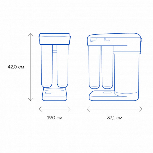 Обратноосмотические фильтры используются для абсолютной защиты от накипи, т.к. полностью устраняют соли жесткости из воды.даЧисло ступеней очисткиКартриджи последовательно очищают воду и от видимых примесей, и от растворенных. Первый картридж задерживает более крупные частицы, а каждый последующий - более мелкие. Чем больше ступеней - тем лучше фильтр очистит воду: поймает более мелкие видимые частицы ржавчины, песка и ила, успеет захватить из воды максимум растворенных примесей - хлора, нитратов, тяжелых металлов и других.4МинерализацияПроисходит после финишной очистки воды. Необходима прежде всего в фильтре обратного осмоса, поскольку такой фильтр полностью устраняет из воды все примеси, в том числе минералы. Минералы добавляются в оптимальной концентрации - для пользы и привычного вкуса воды.даПостфильтрацияФинальный этап очистки воды: картриджи постфильтрации удаляют самые мелкие механические частицы и кондиционируют воду, придавая ей более приятный вкус.даНакопительная емкостьОбычно нужна в фильтрах обратного осмоса. Глубокая фильтрация требует времени. Чтобы Вам не приходилось ждать, пока вода наберется в чайник или кастрюлю, почти во всех моделях используется накопительный бак для чистой воды или другая емкость. В стандартном фильтре обратного осмоса под мойку воды в баке достаточно для семьи из 5-6 человек.даФильтрующий модуль в комплектедаОтдельный крандаДавление в водопроводе не более, атмМаксимальное давление воды на входе в систему, при котором возможна стабильная работа фильтра.6,5Ширина, смОбратите внимание на габариты фильтра, и измерьте, сколько свободного пространства в предполагаемом месте установки.37,1Глубина, смОбратите внимание на габариты фильтра, и измерьте, сколько свободного пространства в предполагаемом месте установки.19,0Защита корпуса от гидроударовдаИсходная водаЖесткая вода – вода с избытком минеральных солей. От нее появляется накипь в чайнике, известковый налет на сантехнике и разводы на посуде. Мягкая вода – та, в которой мало минеральных солей. Нет накипи в чайнике и разводов на посуде. Фильтры для мутной воды и фильтры от ржавчины, как правило, имеют несколько стадий очистки и дополнительный полипропиленовый картридж. Он задерживает механические частицы ила, песка и ржавчины и защищает картриджи более глубокой очистки.любаяУстраняет мутностьМутность водопроводной воды может говорить о том, что в ней много мелких механических частиц. Важно, чтобы в фильтре был установлен дополнительные картридж механической предфильтрации (полипропиленовый) - он продлит жизнь остальным картриджам более тонкой очистки.даУстраняет ржавчину, бурый осадокЛюбой фильтр под мойку удалит из воды крупные и мелкие частицы ржавчины. Некоторые фильтры имеют повышенный ресурс по железу: они дольше служат в такой воде, поскольку лучше подходят для удаления из воды железа и механических частиц ржавчины.даЗащита от бактерийВсе проточные фильтры в той или иной степени защищают от бактерий. Например, добавление серебра препятствует их размножению. Это стандартная степень защиты. Если в семье есть дети, пожилые люди или аллергики, воду рекомендуется обеззараживать, то есть полностью удалять микроорганизмы. Повышенную защиту от бактерий дают фильтры с половолоконной мембраной. Это пучок трубок с по